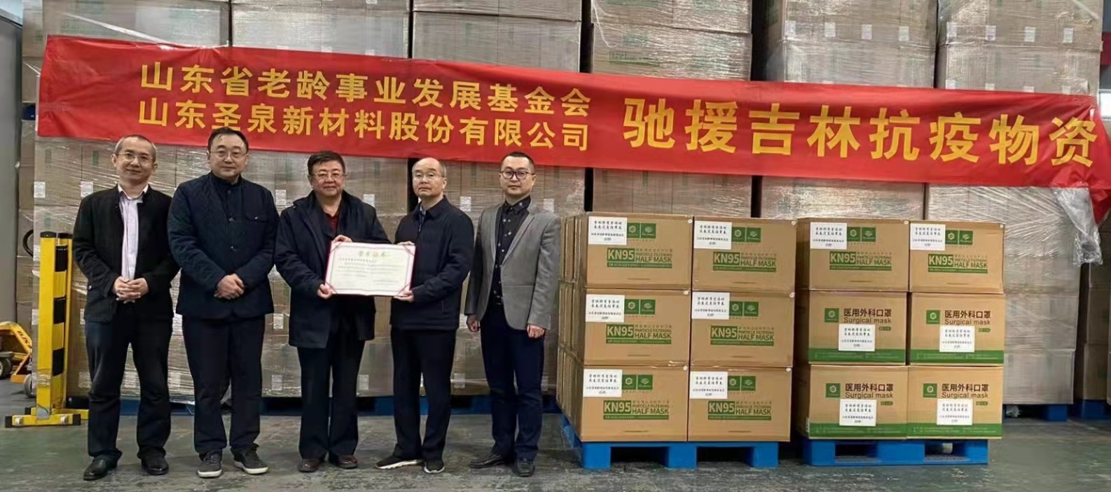 山东圣泉新材料股份有限公司生产的石墨烯防护口罩采用国际首创提取技术,具有持久抑菌、吸附异味等优异性能,具有良好的防护效果,此次,捐赠KN95生物质石墨烯防护口罩、医用外科口罩50800只,其中3万只助力吉林抗疫,其余定向捐赠我省部分养老机构和老年大学,用于疫情防护。
