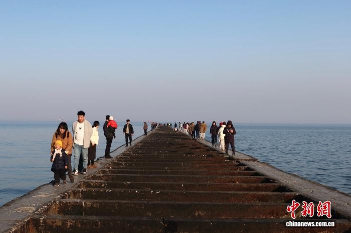 2月20日,孤东海堤人气旺盛。当日是中国农历正月初四,位于山东东营的孤东海堤上人头攒动,热闹非凡。孤东海堤始建于1986年,是胜利油田为保障孤东采油厂沿海石油生产而修建的人工防潮堤,被誉为“海上长城”,于2025年作为“孤东石油会战纪念地”的核心物项之一,入选山东省工业遗产。 孙琳茹 摄
