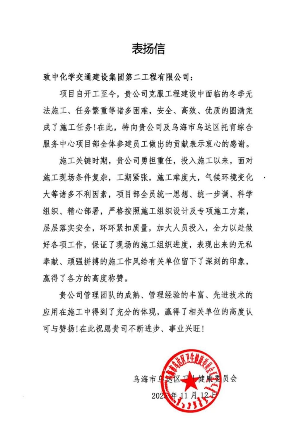 乌达区托育综合服务中心项目的圆满竣工,是第二工程公司深耕民生工程领域的又一重要成果。未来,公司将继续聚焦群众急难愁盼问题,充分发挥央企在施工技术、资源整合、管理运营等方面的优势,以更高标准、更严要求、更实举措打造更多民生精品工程,为增进民生福祉、服务区域发展贡献央企力量。