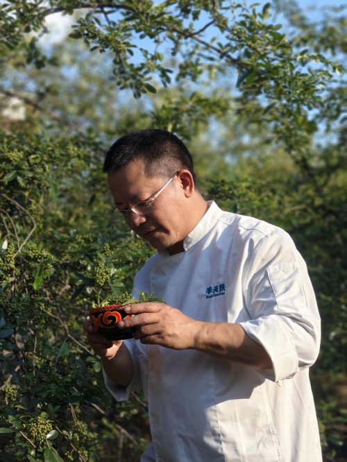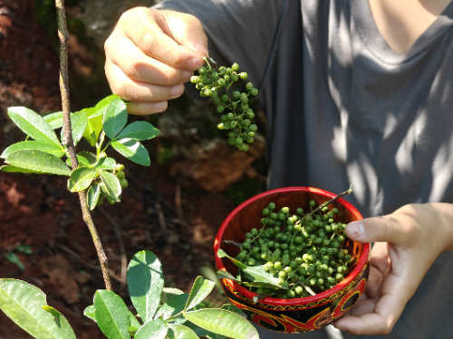 (半天妖烤鱼研发负责人在山间挑选青花椒)