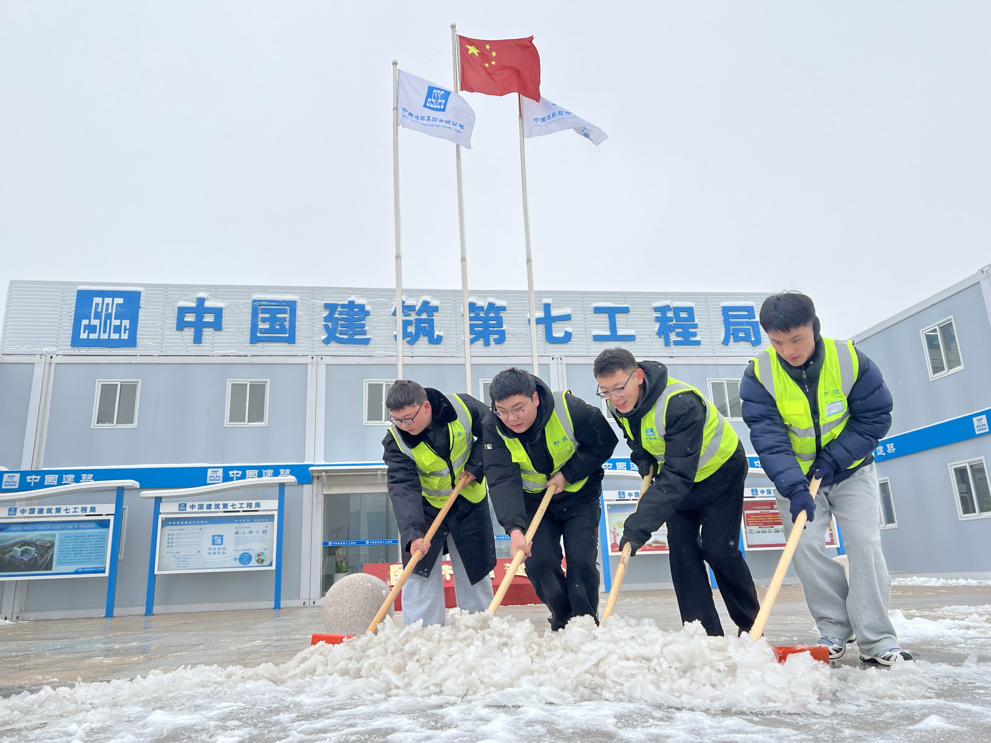 严寒中建设者们持续数小时作业,用铁锹和汗水守护了工地与城市的脉搏,这份坚守让寒冬也有了温度。本次扫雪行动采取“党群联动、内外同步”的方式,充分展现了项目党员与青年员工的责任意识与奉献精神,也是践行中建七局“拓展幸福空间”企业使命的生动体现。作为机场区域的建设单位,我们既要保障工程顺利推进,也要积极履行社会责任、服务周边群众,为美好济南建设持续贡献力量。