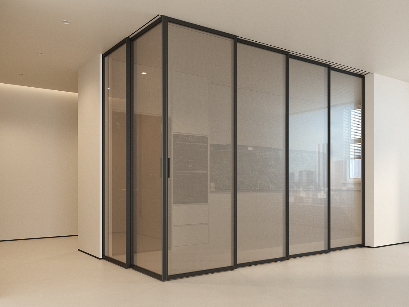 大面积通透玻璃搭配纤细铝框,在划分厨房、阳台、浴室、书房、衣帽间等不同功能区时,不会造成视觉阻隔。光线得以自由穿梭,让每个空间都明亮通透,视觉上实现了空间的无限延展。无论是现代简约、轻奢质感还是极简纯粹的装修风格,这款全景门都能无缝融入,以利落线条与通透质感,为家居增添时尚大气的艺术氛围,让家成为自带高级感的美学空间。