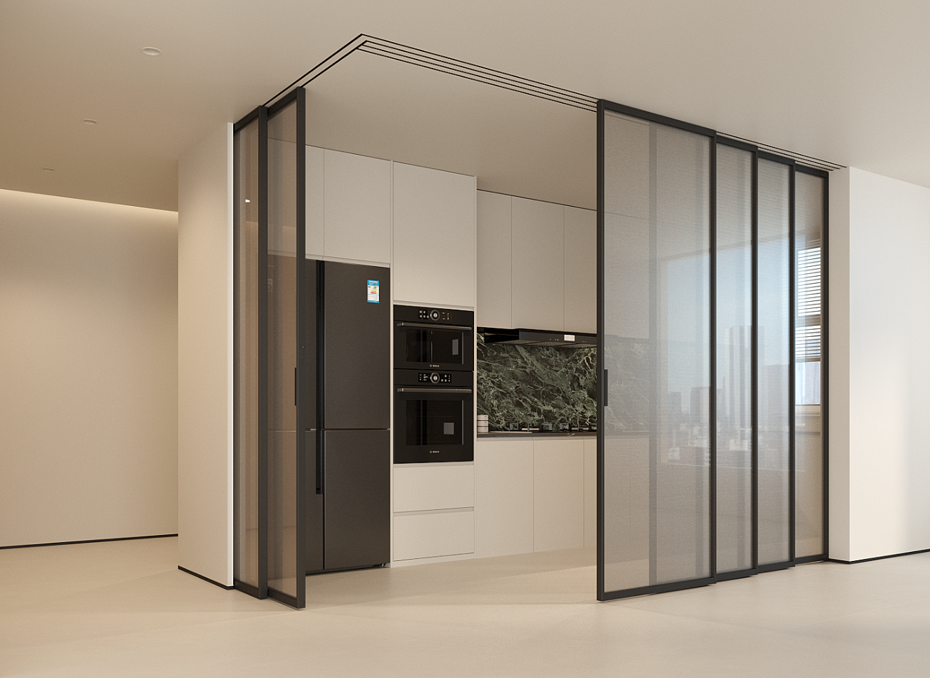 玻璃采用汽车级 3C 钢化玻璃,不仅具备超高通透度,让视野毫无遮挡,更拥有出色的安全防爆性能。即便遭遇意外碰撞破碎,也会碎裂成无尖锐棱角的颗粒,从根本上杜绝划伤风险,守护家人日常安全。同时,钢化玻璃的隔音效果优异,能有效隔绝不同空间的噪音干扰,让厨房的烹饪声、阳台的外界杂音都不影响室内的静谧氛围。