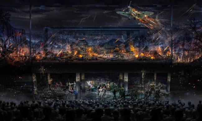 《巍巍沂蒙山》大型红剧演出:设有3000座,采用幻境叠影,镜像剧场,拥有全球首创的叠式模化台面台仓。