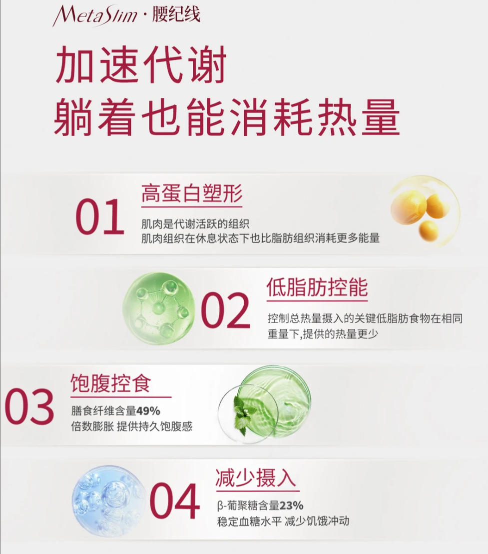 答:核心是缺乏“生理饱腹调节”,仅靠低卡、高纤维物理填充,无法抑制食欲信号。腰纪线通过β-葡聚糖+优质蛋白,双重激活饱腹激素,实现4-6小时舒适饱腹,避免因饥饿打破控热节奏。