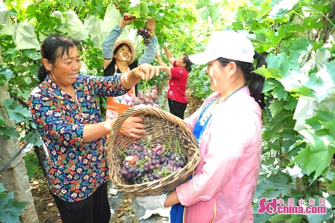 “西有吐鲁番,东有大泽山”。金秋时节,青岛平度市大泽山镇3.5万亩葡萄进入采摘季。记者走进大泽山镇尹家村山林人家果品农民合作社葡萄种植园看到,负责人徐伟正带领几名工人对采摘的葡萄进行修剪装箱,身后封箱的葡萄在不久后将通过电商平台发往各地。交谈中徐伟告诉记者,他是从父辈手中接过葡萄种植的接力棒,并在淘宝、拼多多等电商平台开设店铺进行销售。