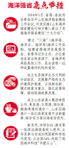 以总书记重要指示要求为指引,山东省委、省政府将建设“海洋强省”作为八大发展战略之一,坚持高位推动、系统谋划、陆海统筹,制定实施《山东海洋强省建设行动方案》,出台一系列创新性政策举措,全面推进海洋强省建设“十大行动”。拥抱海洋、开发海洋、保护海洋,把海洋资源优势转化为高质量发展优势,新时代的蓝色交响曲在山东奏响华丽乐章。