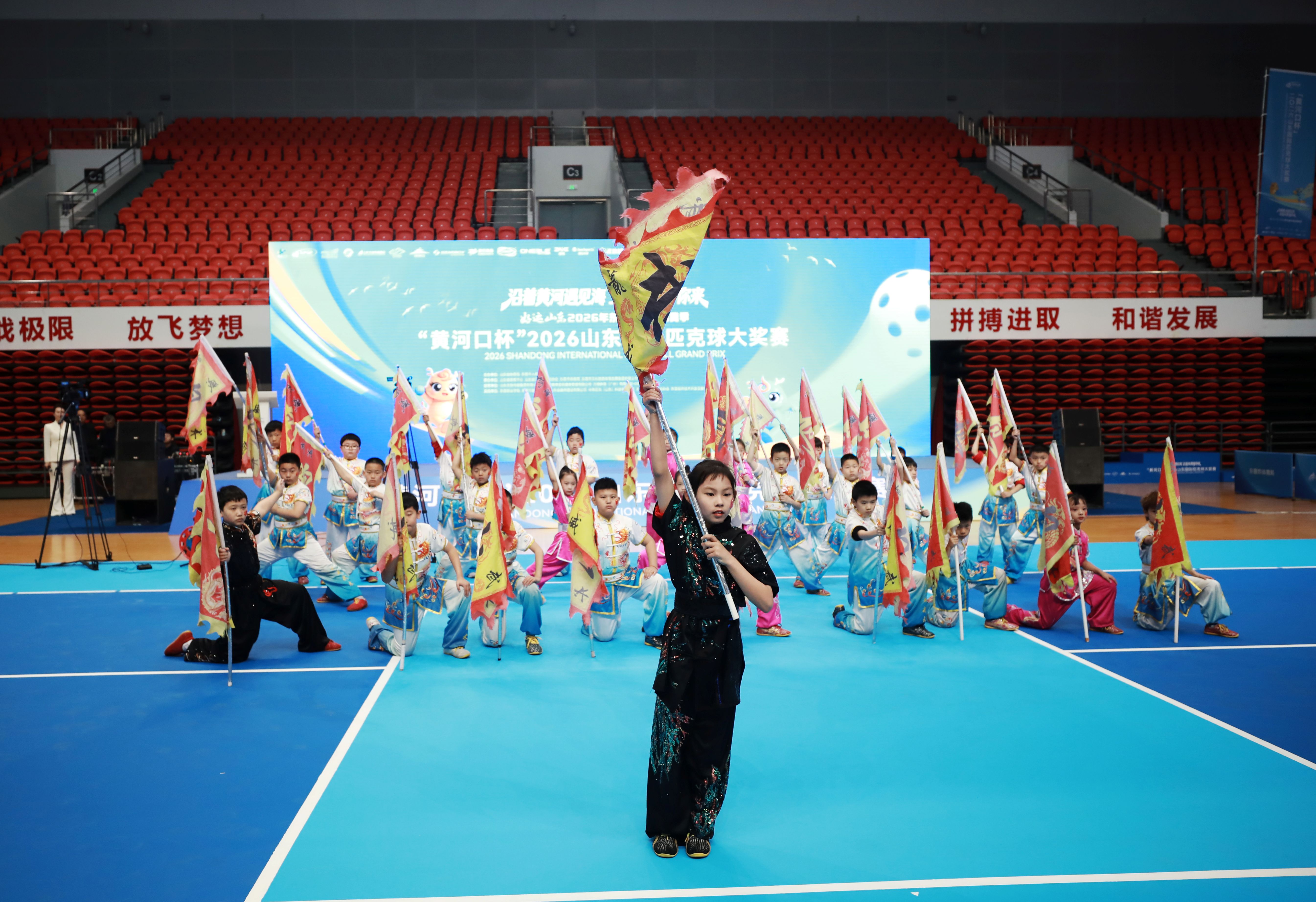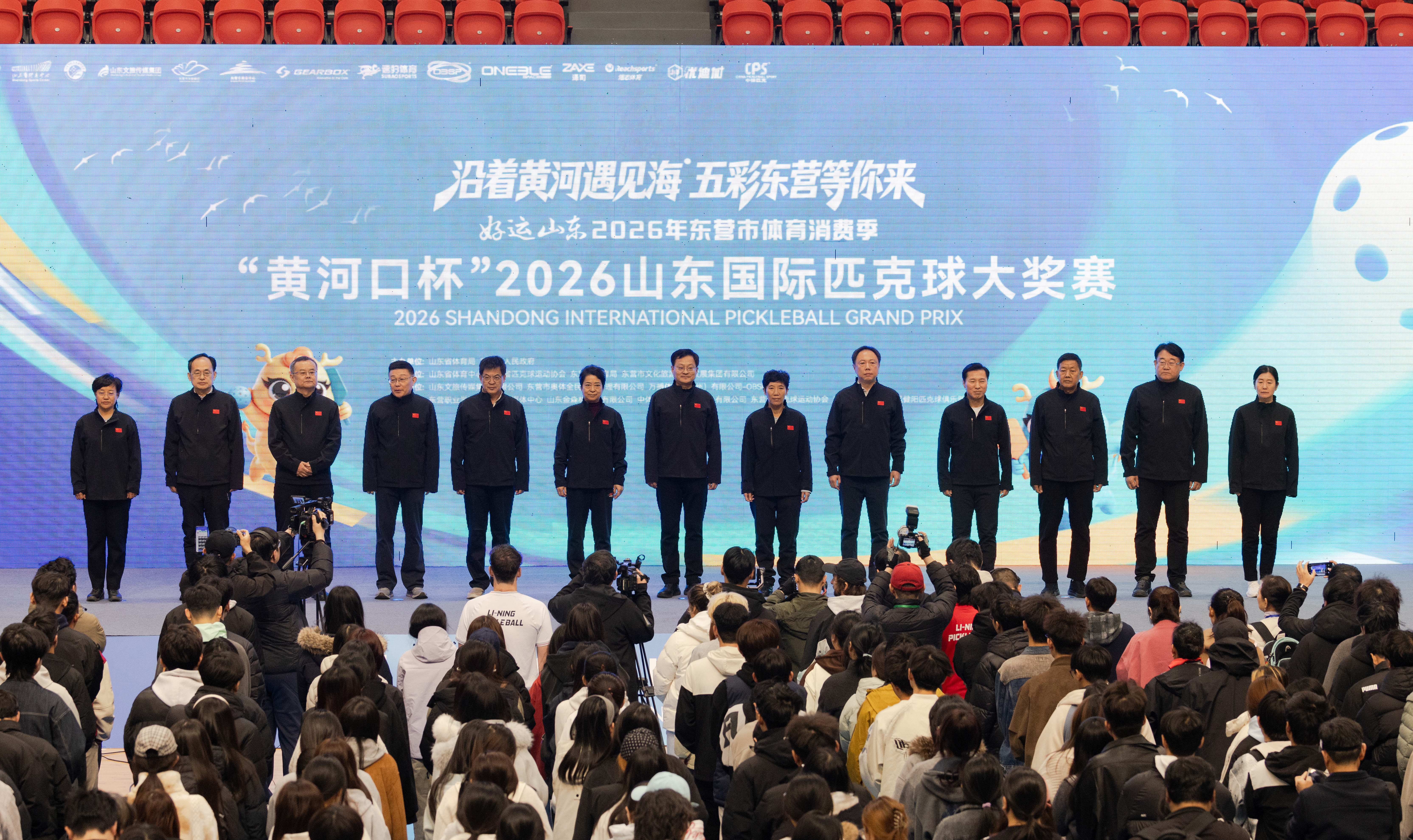 3月21日,“黄河口杯”2026山东国际匹克球大奖赛在东营市奥体中心开赛。省政府副秘书长孙永、省体育局局长乔云萍、东营市政协主席刘美华、山东文旅集团董事长丁艺、省体育中心主任许铁军、东营市政府副市长边志伟、省匹克球运动协会会长孙乐为以及东营市体育局、东营市文旅集团等有关领导出席仪式开赛仪式。