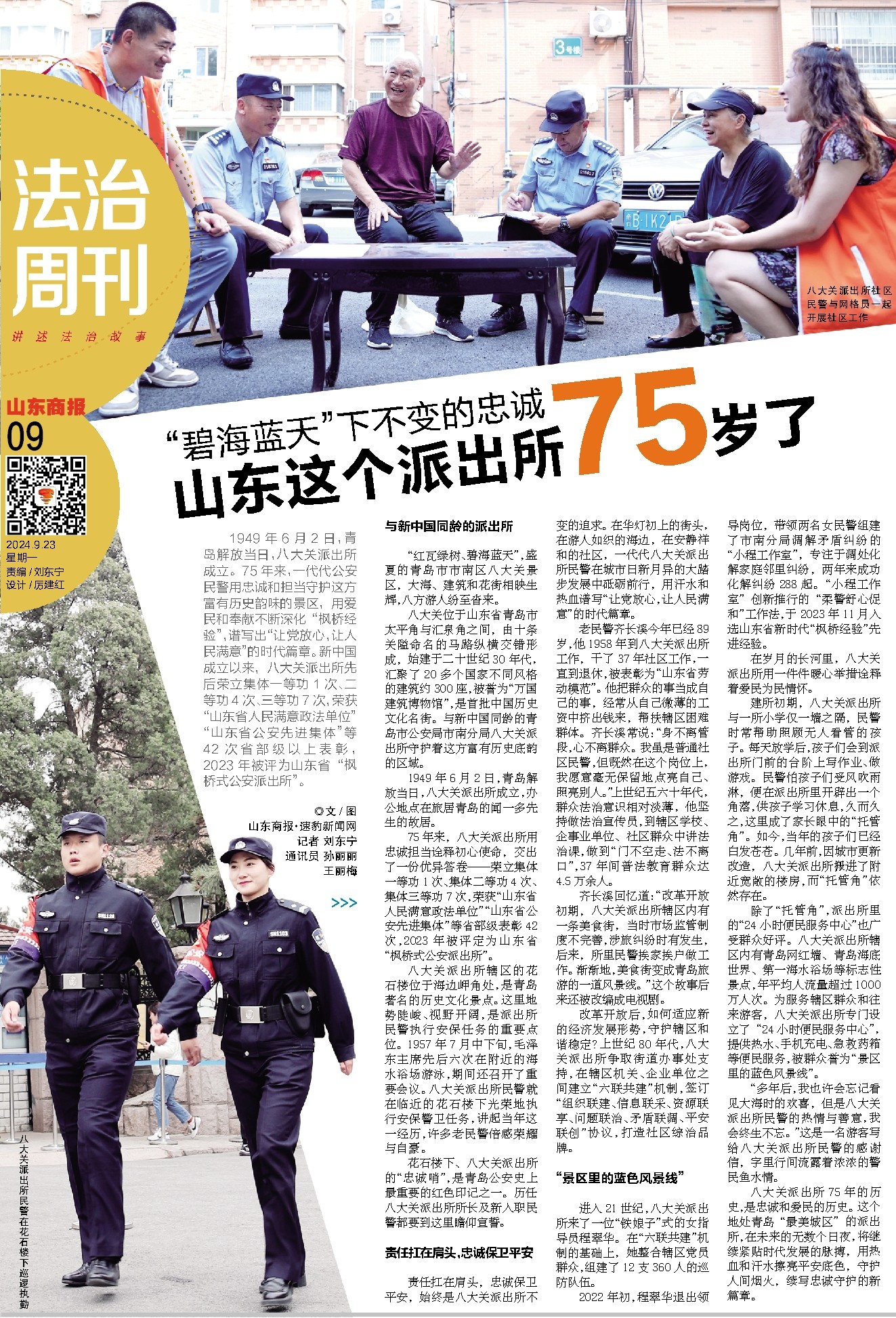 八大关派出所75年的历史,是忠诚和爱民的历史。这个地处青岛“最美城区”的派出所,在未来的无数个日夜,将继续紧贴时代发展的脉搏,用热血和汗水擦亮平安底色,守护人间烟火,续写忠诚守护的新篇章。