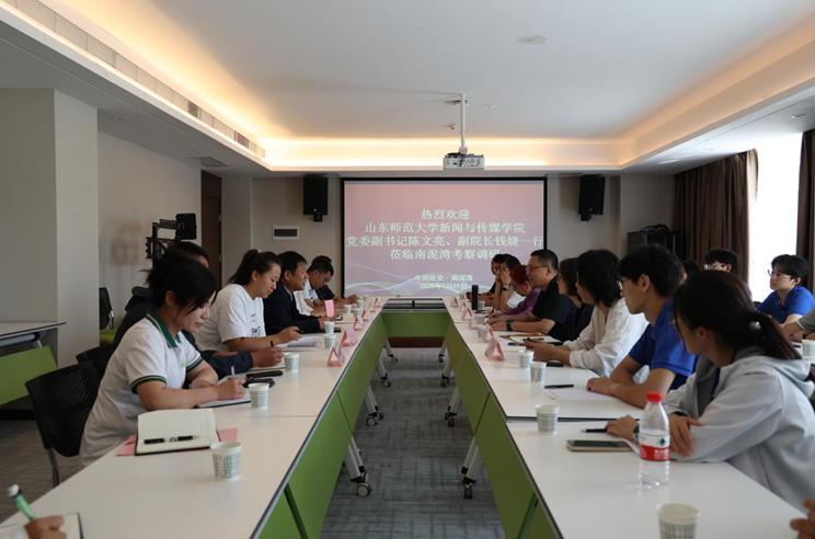 9月1日上午,山东师范大学新闻与传媒学院“新传学子延安行”团队师生与南泥湾开发区管理委员会有关领导、北京星润福科技有限公司总经理薛敏、北京大学深圳研究院“少年中国芯”项目负责人成波开展座谈会。