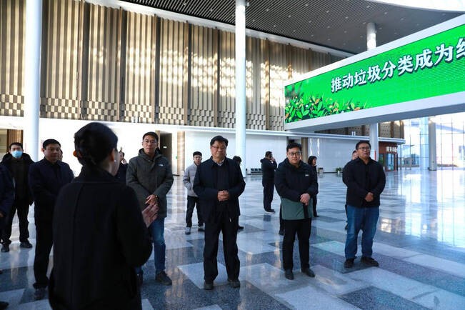 随后,观摩团抵达济南黄河国际会展中心。作为山东省推动新旧动能转换的核心项目,该会展中心在垃圾分类方面同样走在前列。在起步区综合执法部的统筹指导下,会展中心成立了垃圾分类工作保障专班,全面落实《济南起步区无废会展实施方案》,构建起一套涵盖体制机制建设、设施配置、宣传引导到收运处理的规范化管理体系。现场可见,500余个二分类果皮箱和四分类垃圾桶科学布局在展馆各区域,配套生活垃圾暂存点、装修垃圾暂存点及电动清运车辆,确保垃圾“日产日清”。同时,通过宣传展板、公众号推广、积分奖励等方式,积极营造“人人参与垃圾分类”的良好氛围,推动“无废会展”理念落地生根。