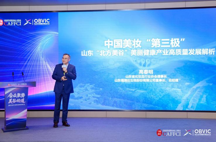 2025年11月28日,备受美妆行业瞩目的2025东方美谷国际化妆品大会在上海奉贤区隆重召开。作为中国美妆产业新兴力量的代表,山东省化妆品行业协会理事长、福瑞达生物股份董事长、总经理高春明应邀出席,并在同期举办的“化妆品产业集聚区高质量发展研讨会”上发表主题演讲,以《中国美妆“第三极”:山东“北方美谷”美丽健康产业高质量发展解析》为题,系统阐述了山东美妆产业的发展蓝图,引发行业广泛关注。