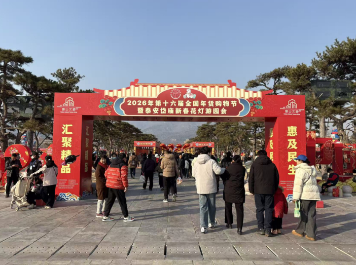 2月17日,正月初一,年味正浓,泰安岱庙张灯结彩、喜乐喧天,泰安岱庙新春花灯园游会在此举办,涵盖文化展演、民俗互动、美食市集等板块。本地市民和各地游客齐聚这座千年古建,赏民俗、品美食、寻乐趣,现场摩肩接踵、欢声笑语不断,到处都是热闹的新春景象。