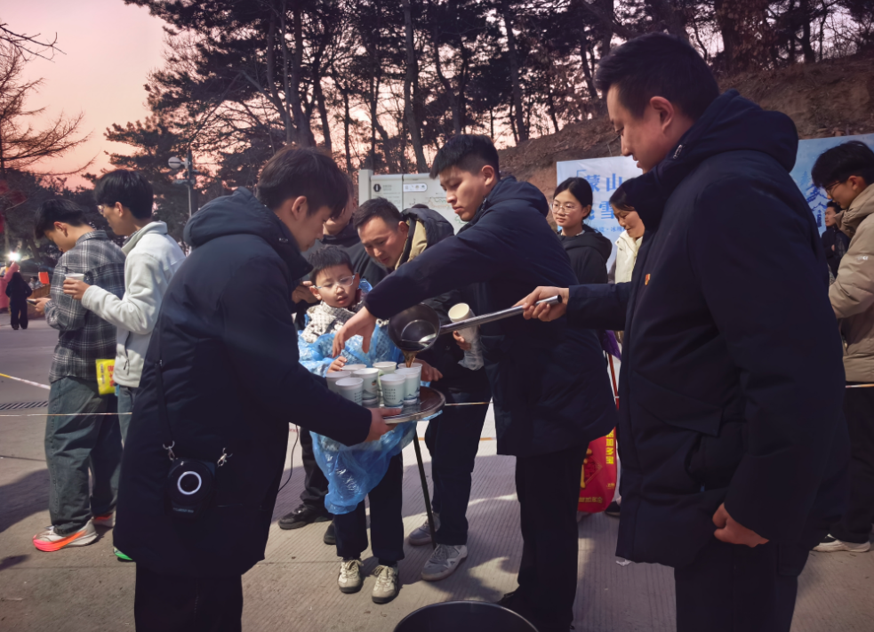 “本来因为限流进不去,心里挺失落的,没想到景区还有这么贴心的政策,太让人感动了!”现场游客的由衷赞叹,是对这项暖心举措最直接的肯定。在做好入园限流与后续补偿服务的同时,景区对已入园游客的关怀亦无微不至。2月19日傍晚气温骤降,面对大量等待下山游客,景区迅速在下山主要路口及索道站等重点区域增设御寒服务点,免费为游客提供热姜茶、热鸡蛋、一次性雨衣等物资,并安排NPC演员在排队区域与游客互动,有效缓解了游客的疲劳与寒意。“走了一天,这口姜茶真是喝到心里去了。”一位带着孩子的母亲感慨。她身边的孩子正兴奋地和一位“仙官”猜着灯谜,早已忘了排队的枯燥。