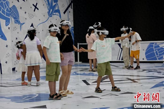 家长带孩子体验“数智文化展厅”中的“深海奇遇”项目。赵晓 摄