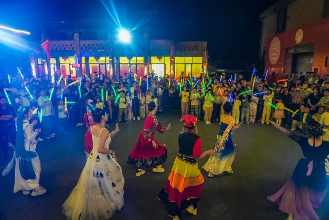 夜幕降临,传统与现代碰撞,国风民乐演奏和民族舞蹈轮番登场,假日的浪漫在齐鲁古建如约而至。
