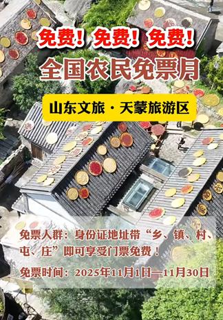 10月31日,天蒙景区一则“农民免票月”的推文引起网友关注,@全国农民朋友免票游玩。11月天蒙免票邀您登高赏金秋,为来年祈愿风调雨顺!