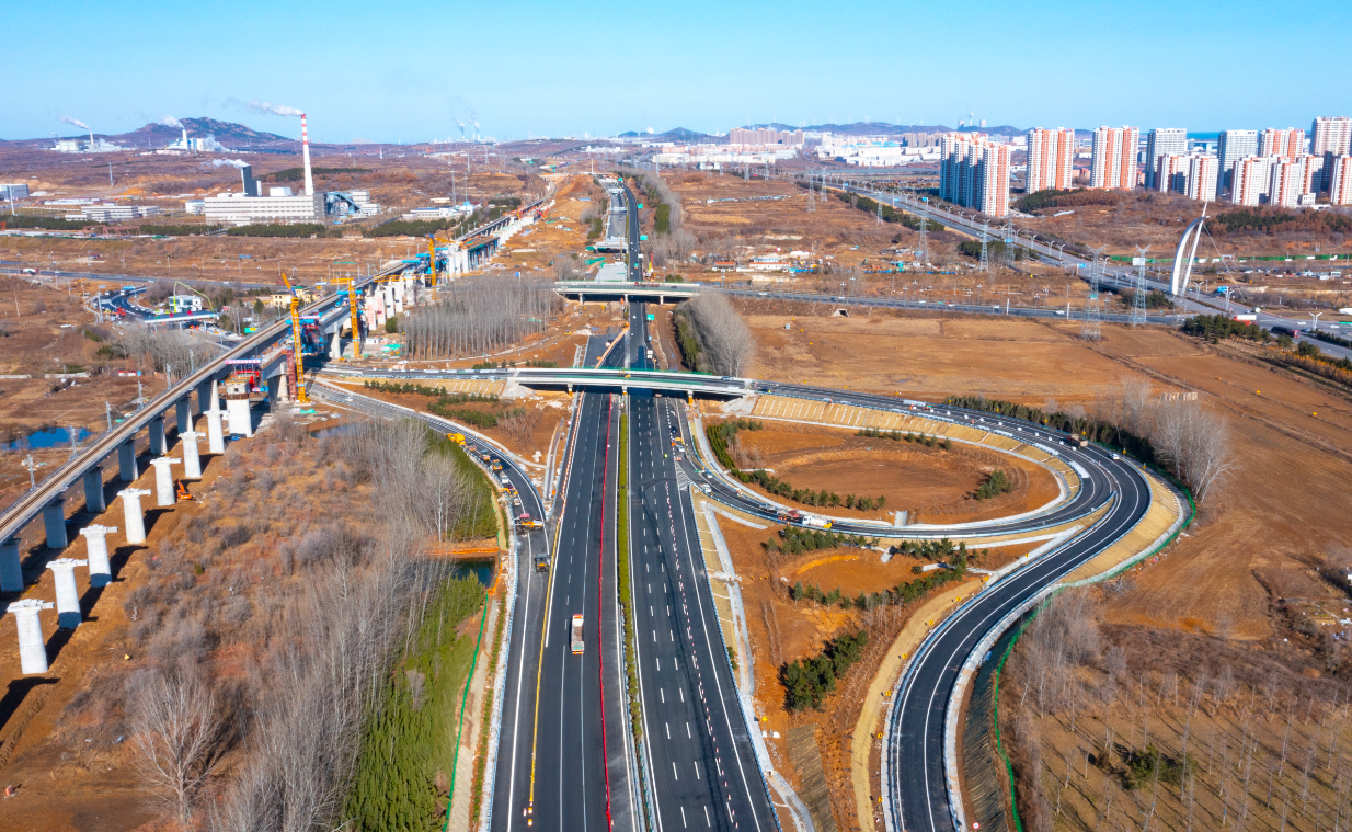 12月29日,由山东高速集团投资建设的荣乌高速烟台枢纽至蓬莱枢纽段改扩建工程(简称“烟蓬改扩建项目”)大杨家枢纽至古现互通段实现双向八车道通行。