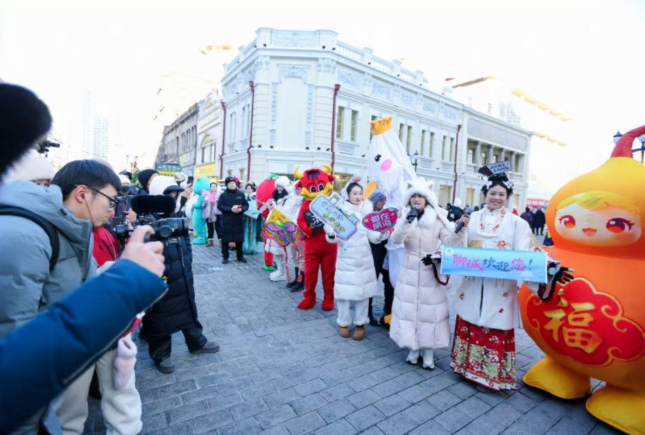 “山东文旅天团尔滨走亲戚”快闪巡游,则以零距离互动的形式,创新文旅传播场景,这是山东优化文旅推广方式、构建主客共享文旅空间的有益探索。在充满复古风情的哈尔滨巴洛克风情街,山东16市代表性文旅IP形象组成的巡游队伍惊艳亮相,憨态可掬的造型、活力满满的姿态,瞬间吸引大批市民游客驻足。沿途设置的趣味问答、知识挑战、手作体验等沉浸式互动环节,让巡游路线变成了一条流动的“山东文旅体验长廊”。“跟着巡游队伍既能玩游戏,又能了解山东的历史风物,还拿到了精致的小礼物,这种‘走亲戚’式的推广太暖心了!”参与互动的哈尔滨市民李女士笑着说道。这种模式不仅拉近了两地民众的心理距离,更实现了文旅资源的精准触达,为跨区域文旅推广提供了可借鉴的实践样本。