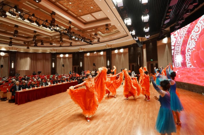 活动在兵团战友艺术团表演的歌舞《奋进新时代》中圆满落幕。仪式结束后,嘉宾们共同游览济南老年人大学校园,实地参观了济南老年人大学健康体验课堂、科技体验课堂、生活体验课堂、金融体验课堂、芳华剧场等场所,最后参观了济南老年人大学校史陈列馆,通过一幅幅老照片和珍贵实物展品,深入了解学校四十多年的发展历程。