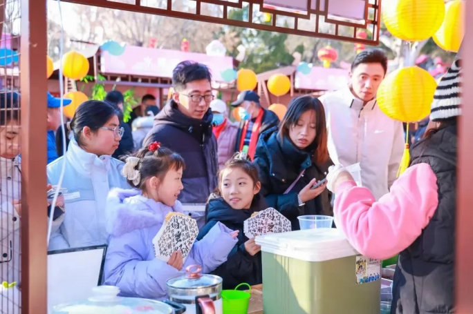 以大明湖为主场,庙会同时划分四大主题市集:北岸自然广场汇聚老济南名吃、网红美食,同步上演国潮民乐、舞龙舞狮等演艺;湖西广场打造非遗雅集,剪纸、陶艺、面塑等传承人现场献艺;超然楼码头广场推出文创潮玩与轻食茶饮,将湖景诗意与新春消费结合;南岸正谊广场聚焦非遗互动,让游客在体验中感受传统手工艺的温度。同期亮相的明湖市集则汇集了非遗手作、创意潮品,搭配马灯舞、锦鲤巡游等特色节目,形成“城湖相依、古今相融”的新春消费动线。