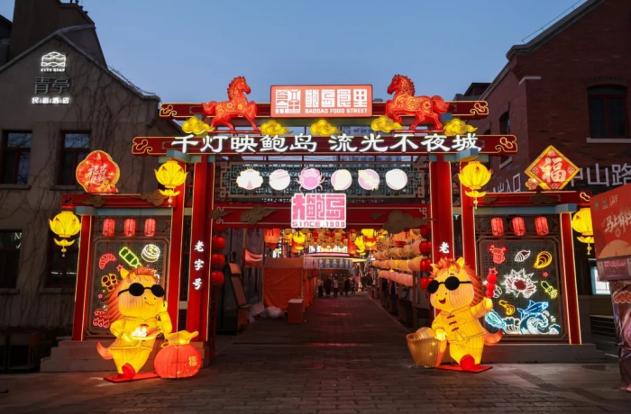 会场以胶州路为主轴,规划316个新春市集摊位,分为烟火市集区、时尚潮流聚合区、非遗花灯沉浸式体验区三大板块:胶州路200个摊位覆盖糖球、萝卜、元宵等传统美食与非遗手造,还原老青岛市井烟火;南区联动鲍岛风物市集与RCEP美食摊位,以IP互动、科技体验吸引年轻群体;北区布设15组特色花灯,打造“千灯映鲍岛”夜间打卡地,搭配文创、网红小吃,激活夜间消费。