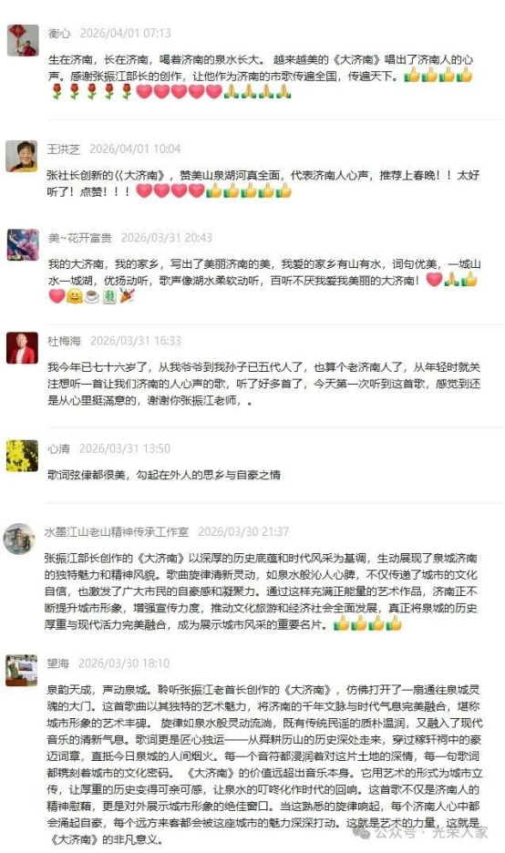 有网友听后感慨:“听了一遍就停不下来,这才是咱们大济南该有的样子。”亦有老济南人表示,这首歌唱出了几代人对这座城市深厚的情感认同。
