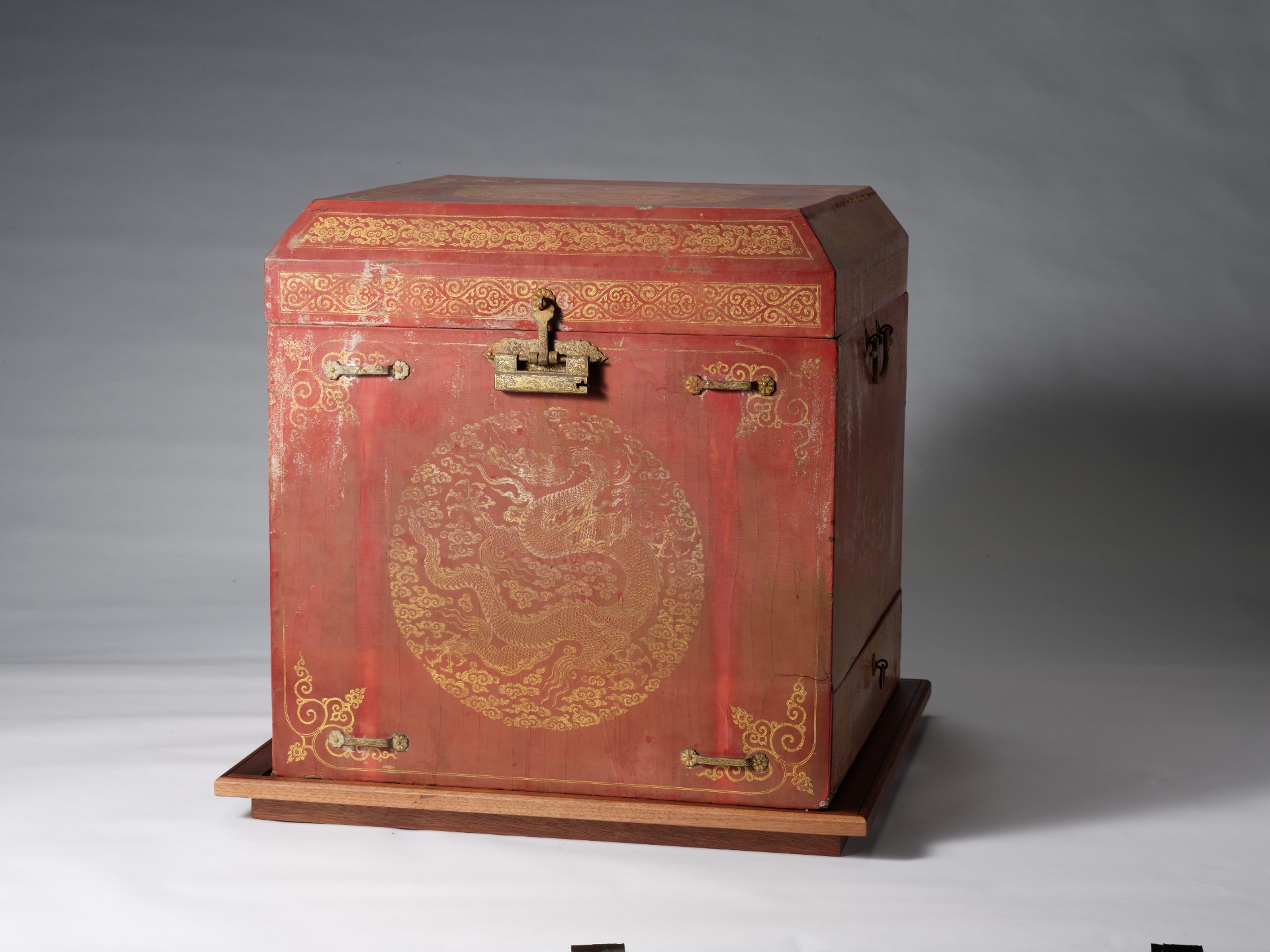 展览分为“承运藩屏”“安荣养尊”“鲁府奎壁”三大板块,展品涵盖冕冠服饰、生活器用、琴棋书画等文物藏品685件。其中现存唯一的明代亲王九旒冕、九缝皮弁及相关纺织品,再现明初亲王礼冠与织造技艺;戗金云龙纹漆箱,代表了中国传统漆艺的巅峰技艺。唐代“天风海涛”琴、宋高宗题跋画作、元代古籍善本,共同勾勒出中华文明绵延千载的传承画卷。