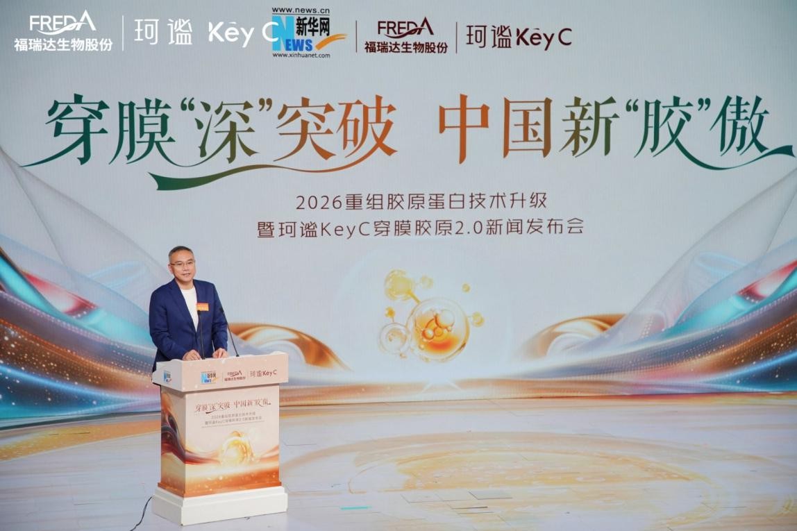 2026 年 4 月 26 日下午,由中国香料香精化妆品工业协会指导、山东福瑞达生物股份有限公司主办、新华网承办的2026 重组胶原蛋白技术升级暨珂谧 KeyC 穿膜胶原 2.0 新闻发布会在北京新华媒体创意工场盛大启幕。本次发布会以技术革新破局行业瓶颈,珂谧穿膜胶原 2.0 完成从 “透皮” 到 “入细胞” 的核心跃迁,重新定义涂抹抗衰天花板,引领全球胶原护肤迈入细胞级抗衰新纪元,奏响国货美妆科技自立自强、迈向全球舞台的时代强音。