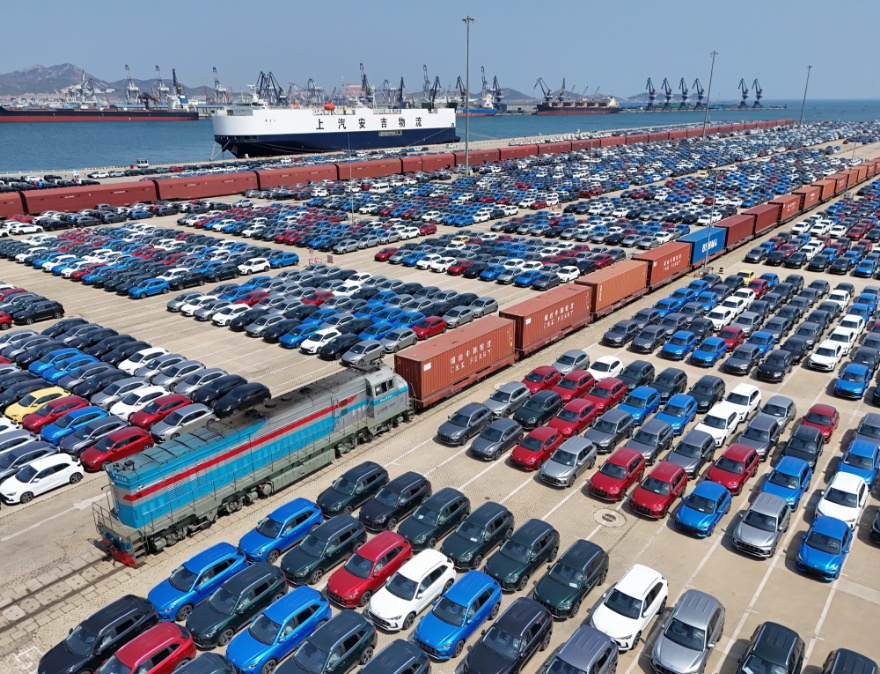 一列海铁联运班列驶过山东港口烟台港商品车码头 新华社发