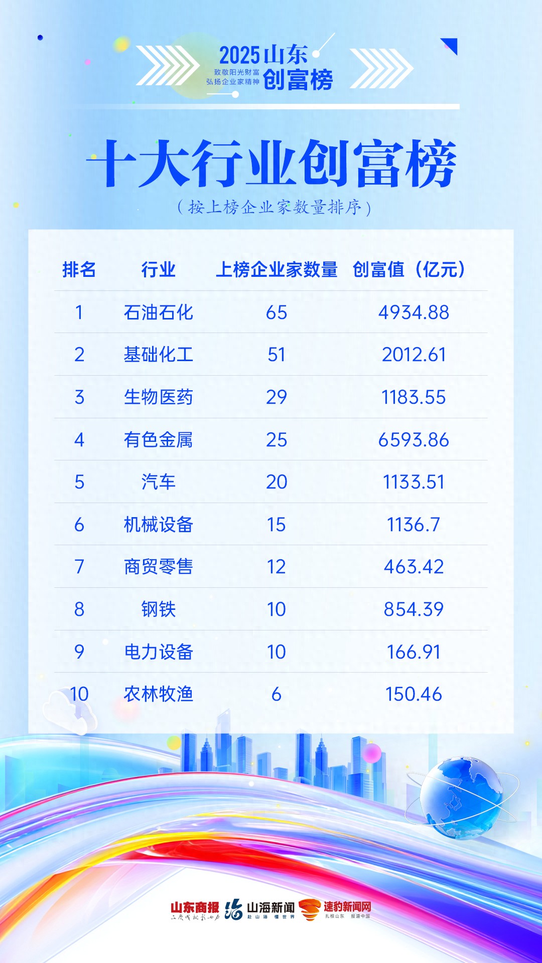 从行业分布特征看,量大面广的制造业仍是山东高质量发展的根基所在,石油石化、钢铁、有色金属等传统优势产业,凭借技术迭代与产业链延伸持续稳固创富基石,彰显出实体经济的压舱石作用;生物医药、电力设备、高端机械设备等新兴产业异军突起,也成为榜单上的“新增长极”;而农林牧渔与商贸零售的强势入围,则折射出全省一二三产业融合发展的协同效应,从田间地头到消费终端,完整的产业生态链正源源不断地孕育着创富机遇。