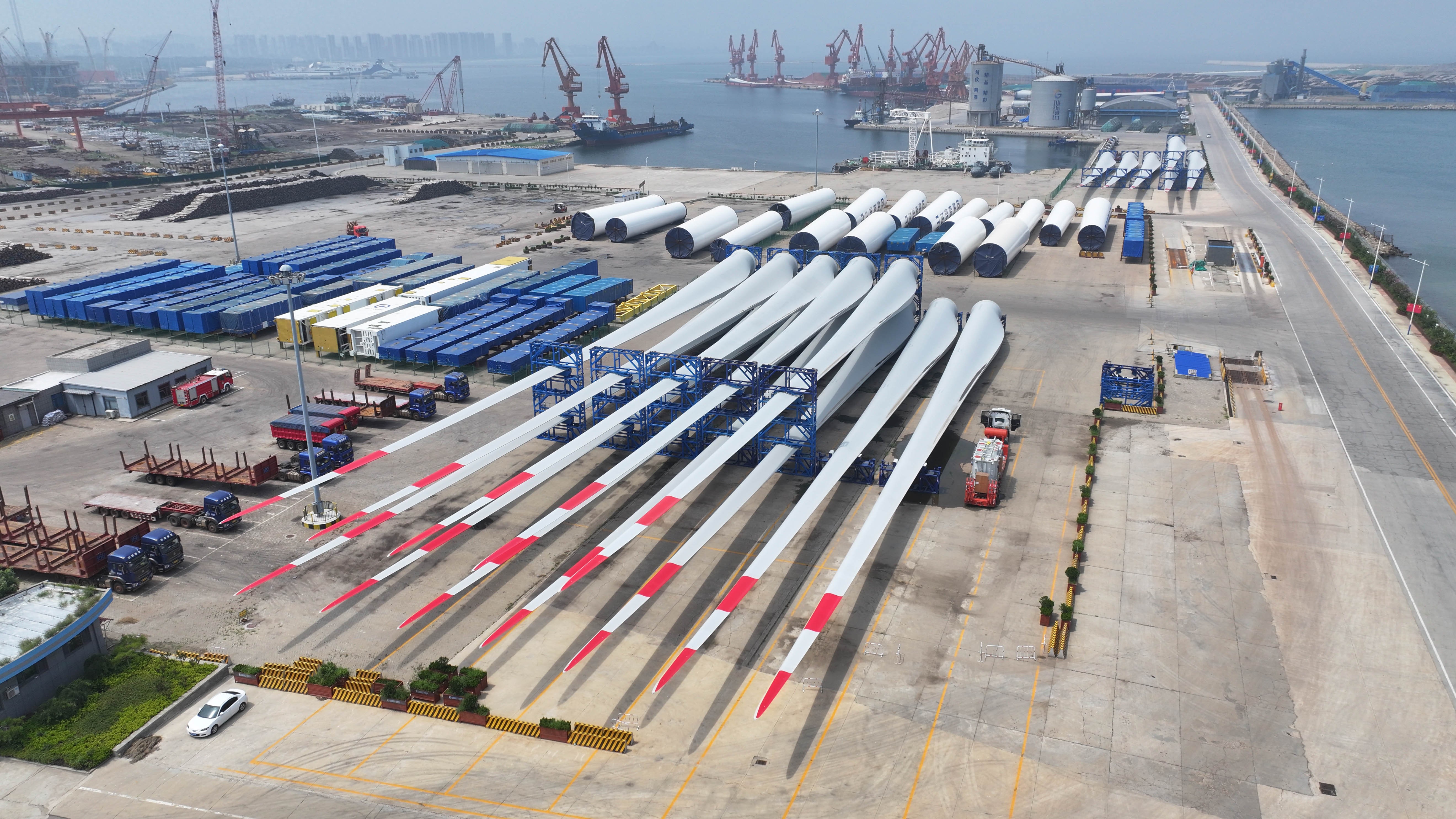 竖起来有几十层楼高,转一圈扫过的面积超过10个标准足球场……位于山东省烟台市蓬莱区的东方电气风电(山东)有限公司的叶片检测试验台上,